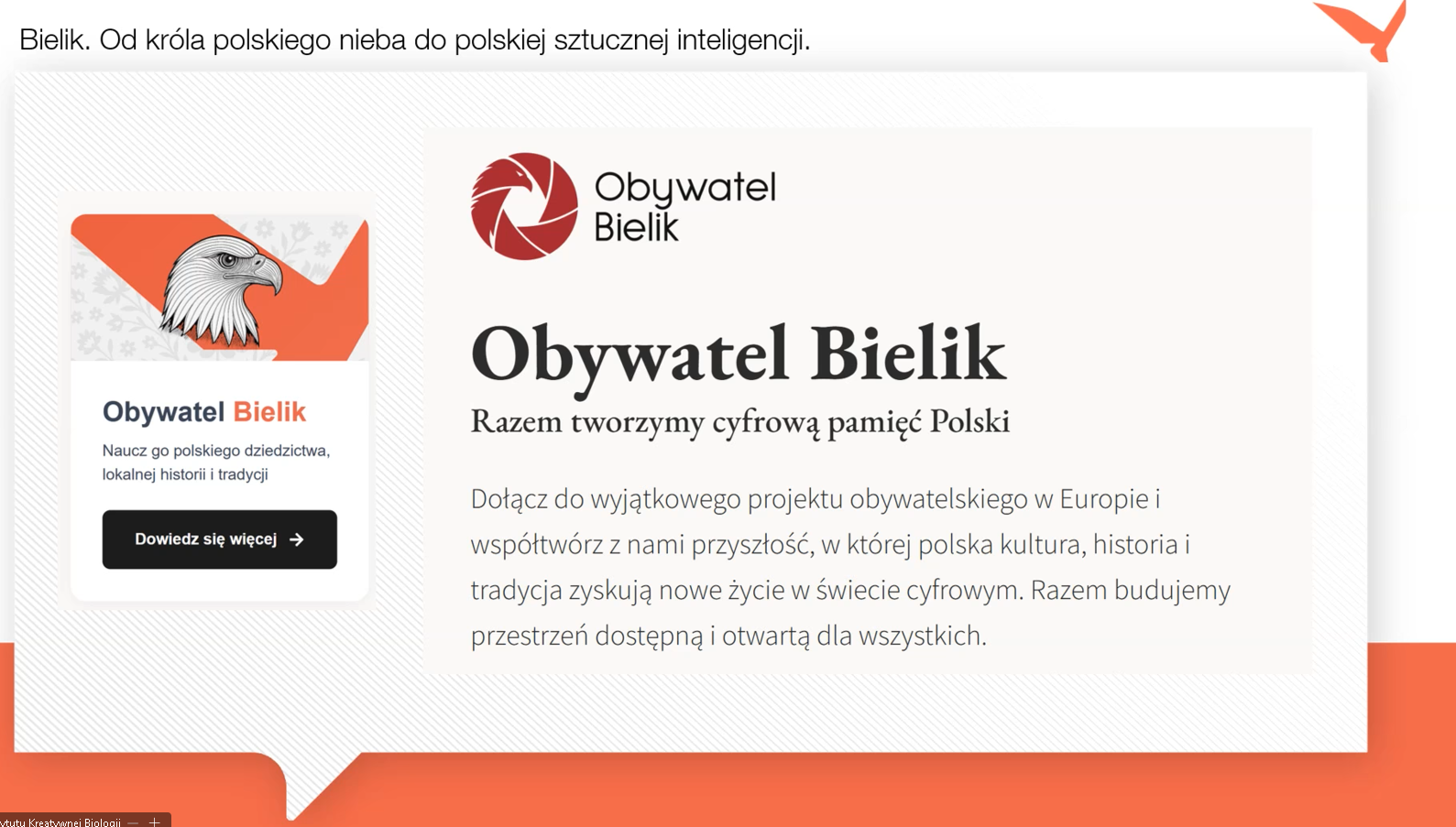 20 marca 2026 r. uczniowie I Liceum Ogólnokształcącego im. Stefana Żeromskiego w Opocznie uczestniczyli w wykładzie pt. „Bielik – od króla polskiego nieba do polskiej sztucznej inteligencji”, realizowanym w ramach programu Instytutu Kreatywnej Biologii Uniwersytetu Łódzkiego.