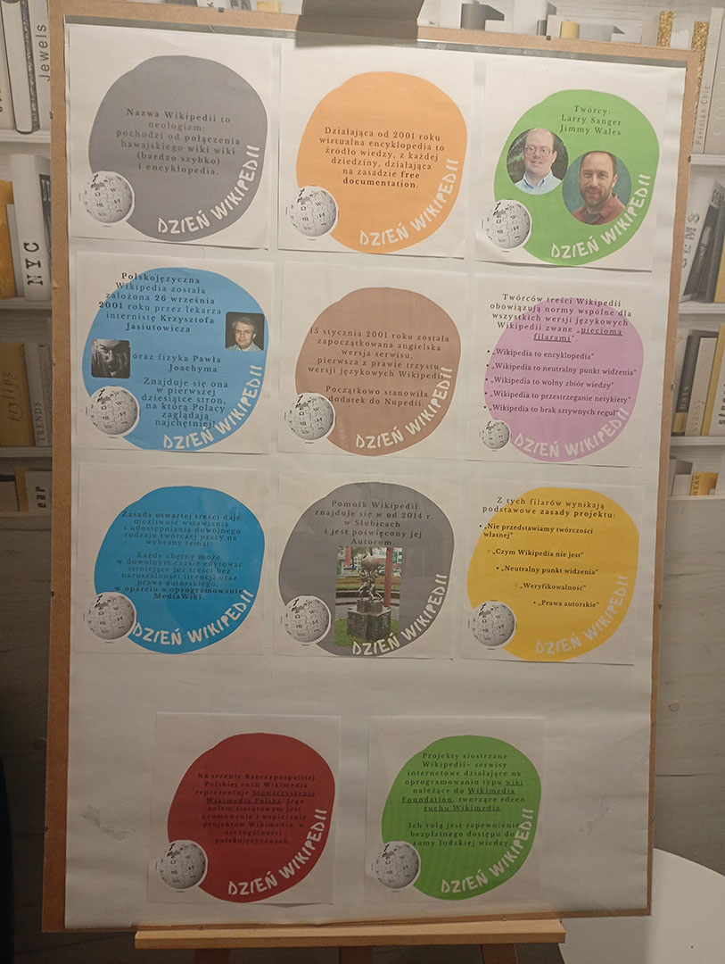 Jest to projekt realizowany przez Wikimedia Polska w ramach wieloletniego programu Wikiszkoła, skierowanego do osób pracujących w szkolnych bibliotekach. Działająca od 2001 roku wirtualna encyklopedia to źródło wiedzy, z każdej dziedziny.15 stycznia 2001 roku została zapoczątkowana angielska wersja serwisu. Polskojęzyczna Wikipedia została założona 26 września 2001 r