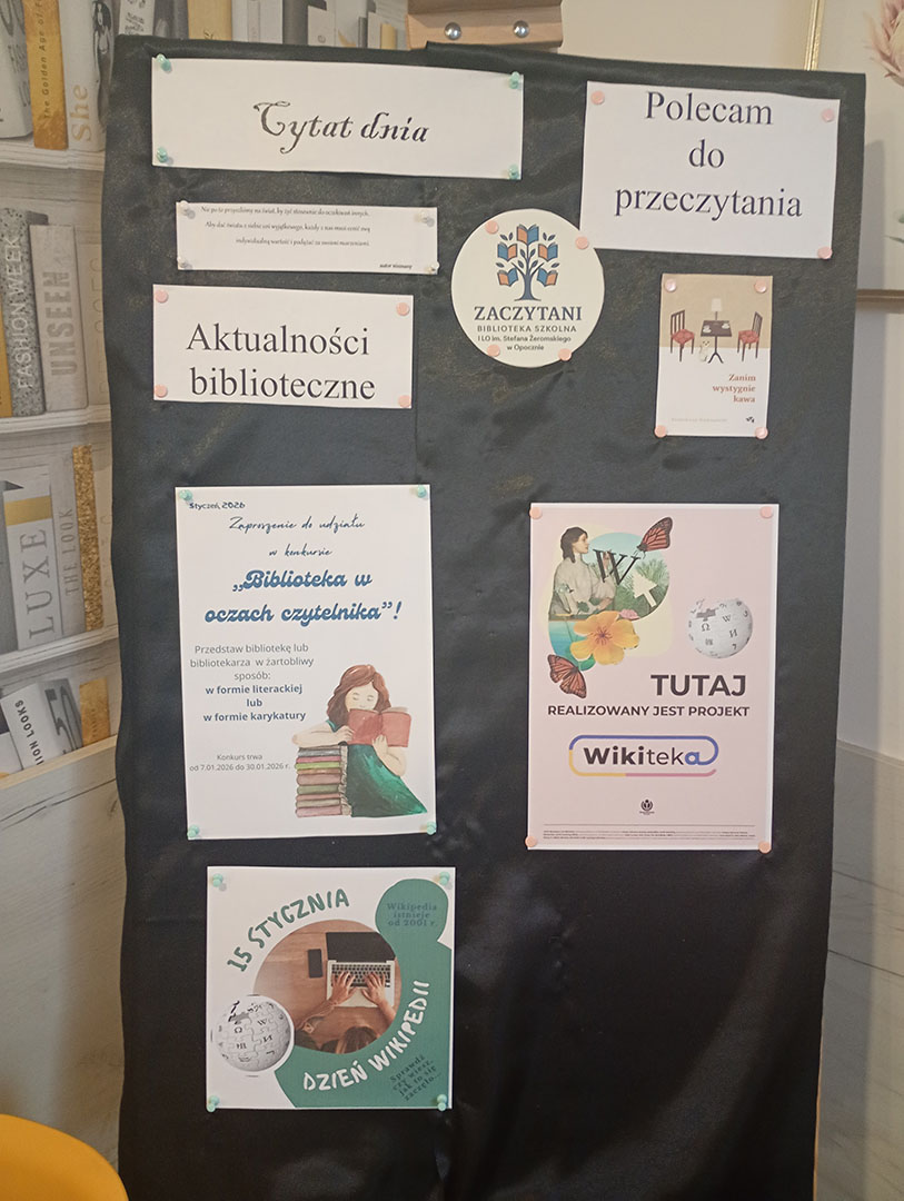 W roku szkolnym 2025/2026 biblioteka I Liceum Ogólnokształcącego im. Stefana Żeromskiego w Opocznie przystąpiła do projektu „Wikiteka – edycja IV”.